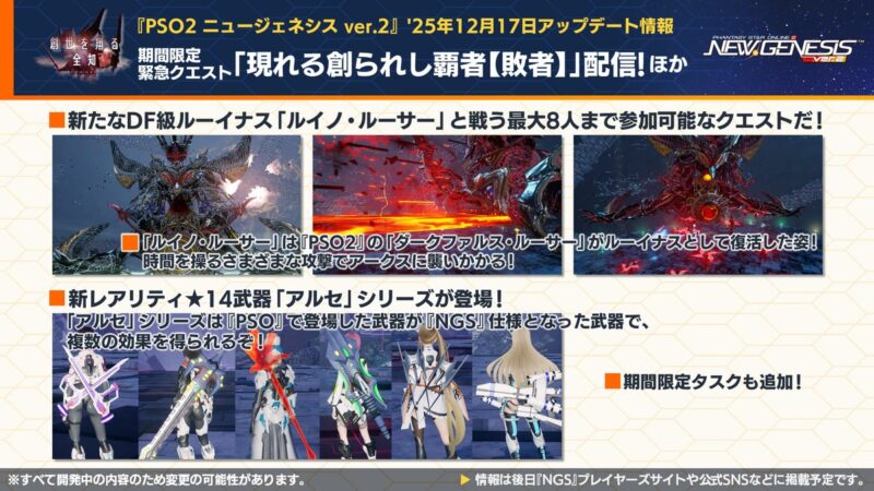 『PSO2 ニュージェネシス』2025年12月アップデート情報!12月より順次実装予定!