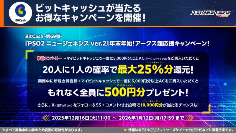 | 1月12日 | ・ビットキャッシュキャンペーン |