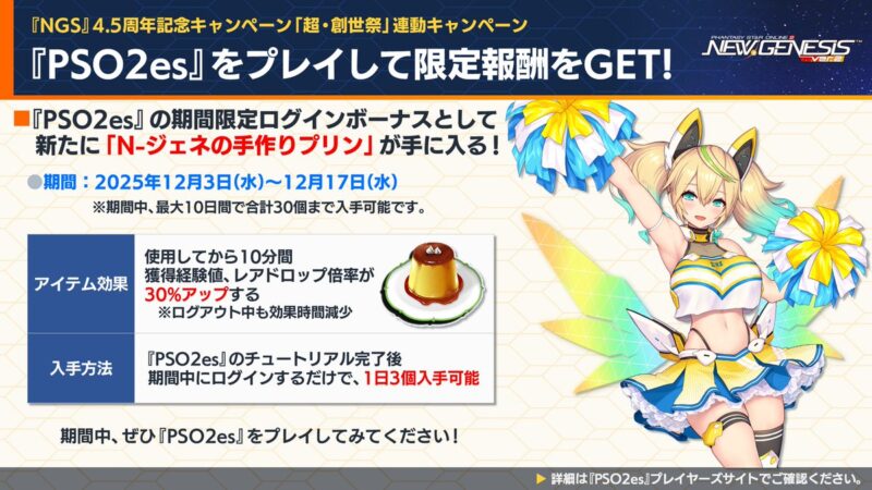 『PSO2es』でN-ジェネの手作りプリンがもらえるキャンペーンが始まります